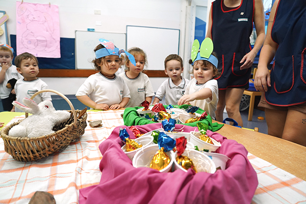 Die Kinder bereiteten sich mit ihren bunten Hasenohren auf das Fest vor und kamen zusammen, um zu tanzen und Lieder rund um diese traditionelle Feier zu singen.